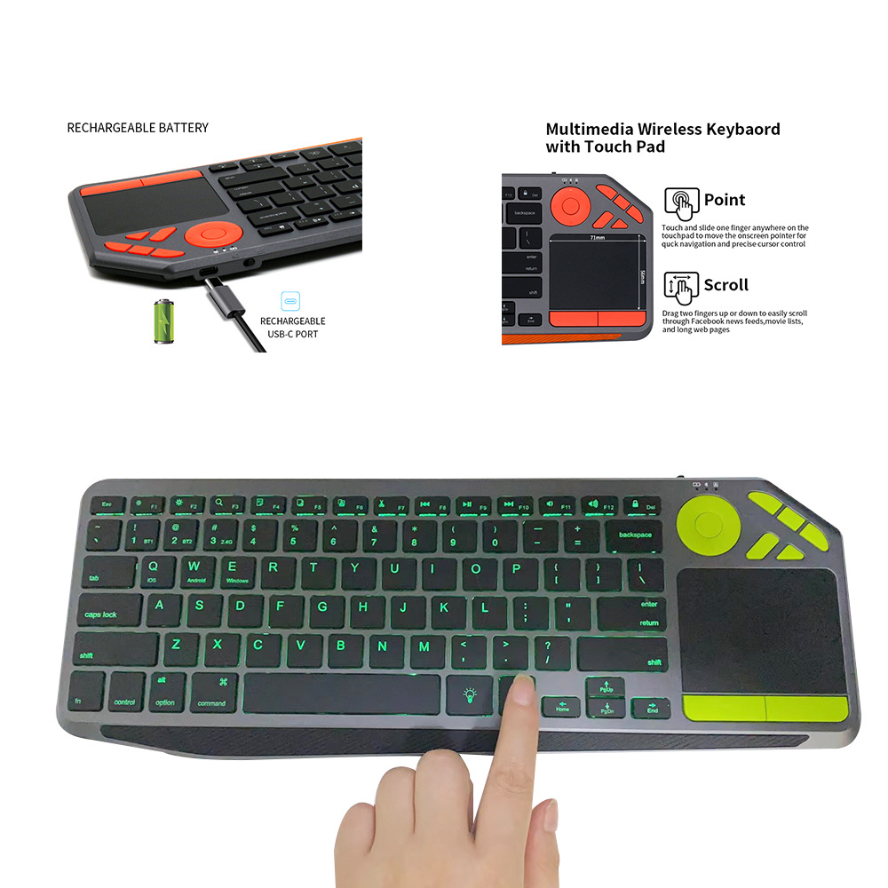 Keyboard komputer tablet pintar, papan ketik multimedia hotkey Bluetooth 2.4g tanpa kabel sentuh dua mode