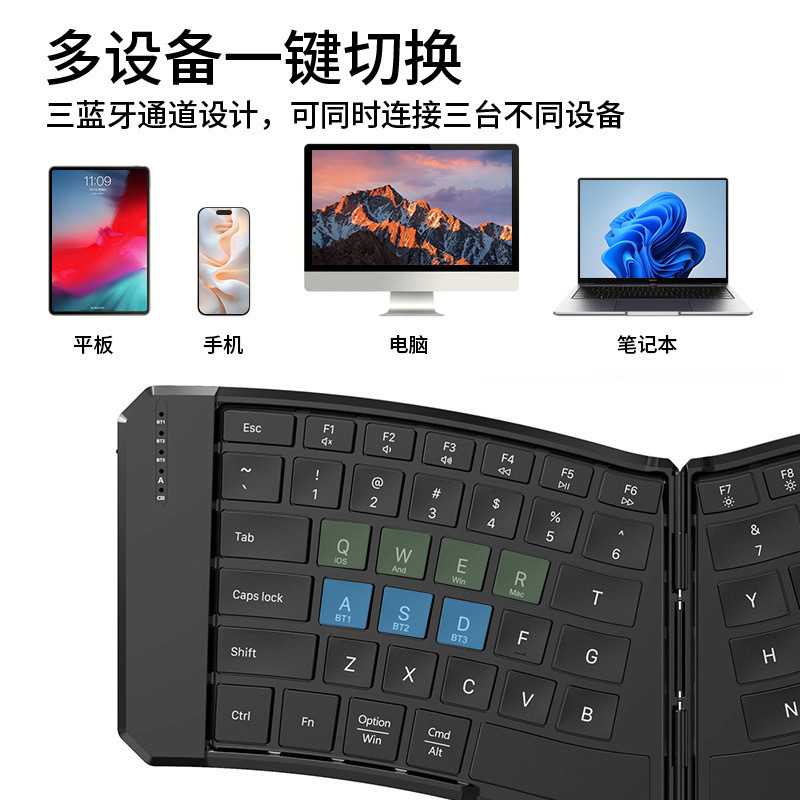 Produsen Model Baru Dua Lipat Dua Tombol Isi Ulang Keyboard Lipat Bluetooth Tiga Sistem Universal Keyboard Bluetooth Portabel Tipis Ringan