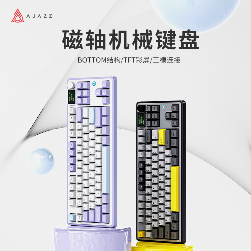 Heijue ak870 Hadiah Sumbu Magnetik Sumbu Ikan Terbang Nirkabel Bluetooth Tiga Mode Keyboard Mekanik Warna Tersilet