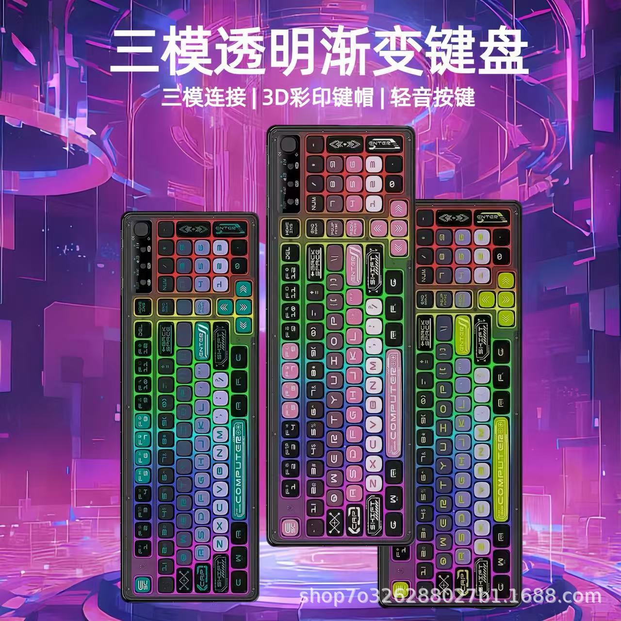 Xuan Yinhu K98 Keyboard Nirkabel Bluetooth Mekanik Berkabel Pencetakan Warna Kepribadian Empat Sisi RGB Transmisi Cahaya Kantor Permainan