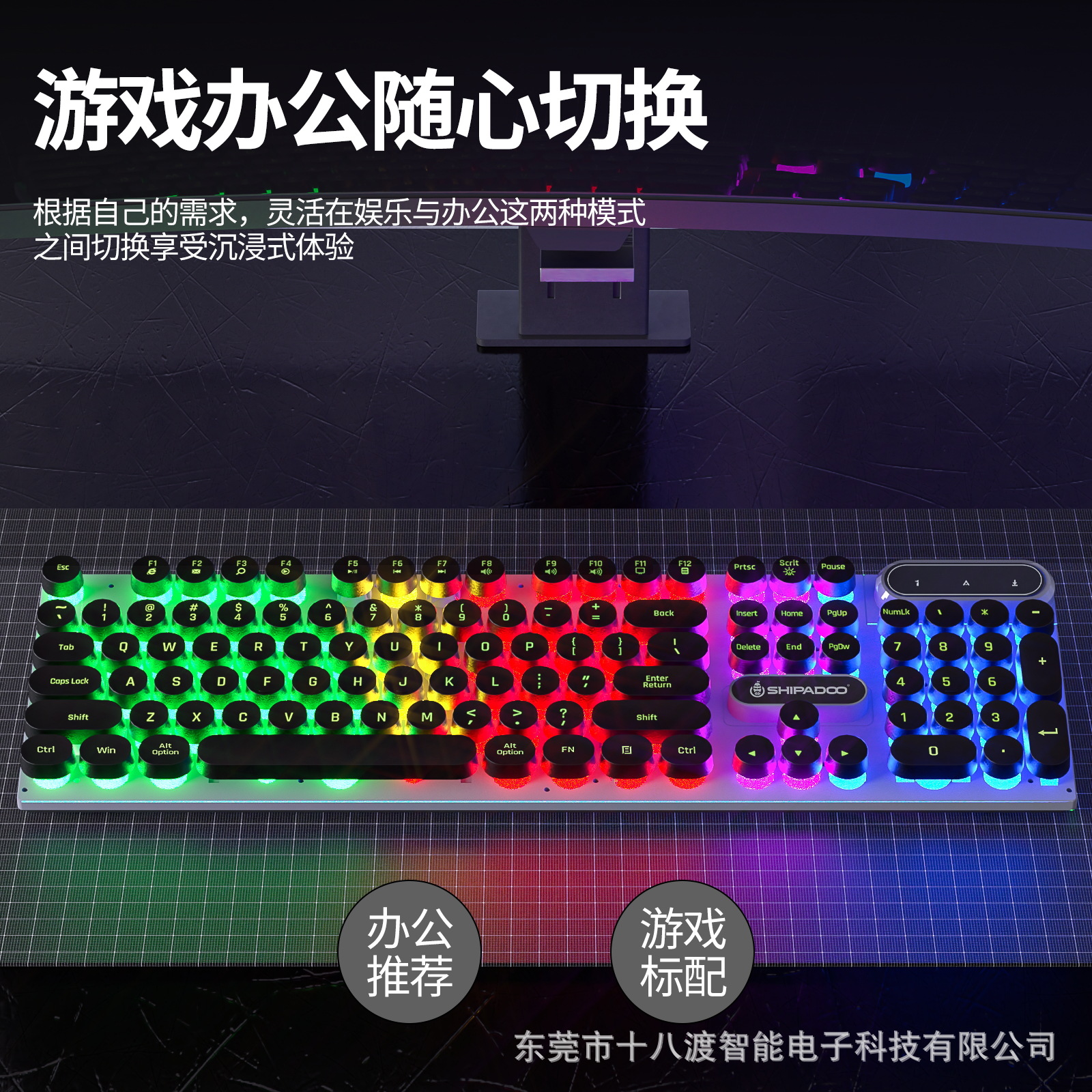 Keyboard Gaming Shibadu K87 Punk Luminous dengan Tombol Persegi dan Keycap Bulat, Nuansa Mekanik, 87 Tombol, Backlit, Cross-border.