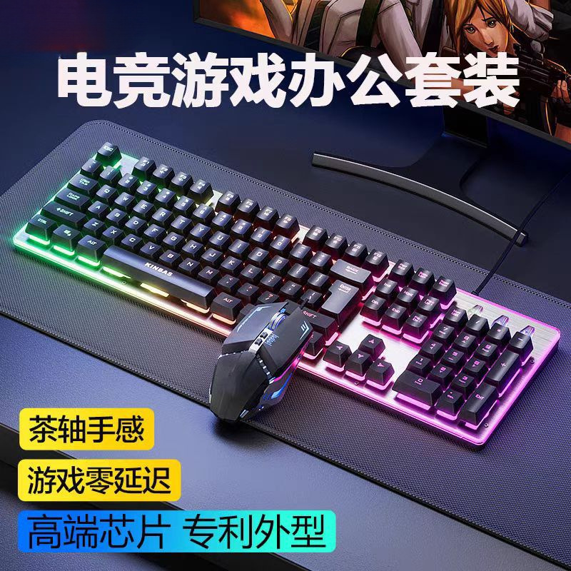 Set Keyboard Kabel Game E-sports Set Keyboard dan Mouse Mekanik Rasa Meja Laptop Kantor Telinga Senyap Grosir