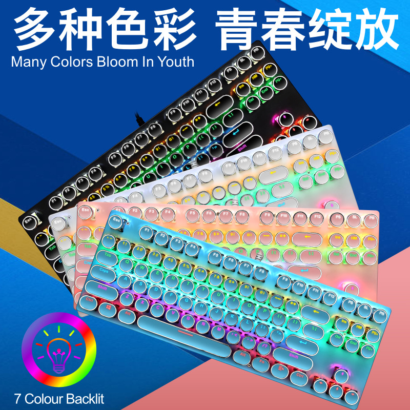 Produsen sumber keyboard mekanik asli punk 87 kunci permainan sumbu hijau e-sport notebook kantor keyboard mekanik lintas batas
