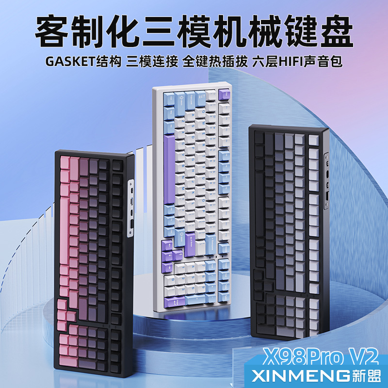 Xinmeng X98ProV2 Keyboard Mekanis Nirkabel Tiga Mode Bluetooth 2.4G yang disesuaikan dengan tombol penuh dengan daya tarik panas RGB