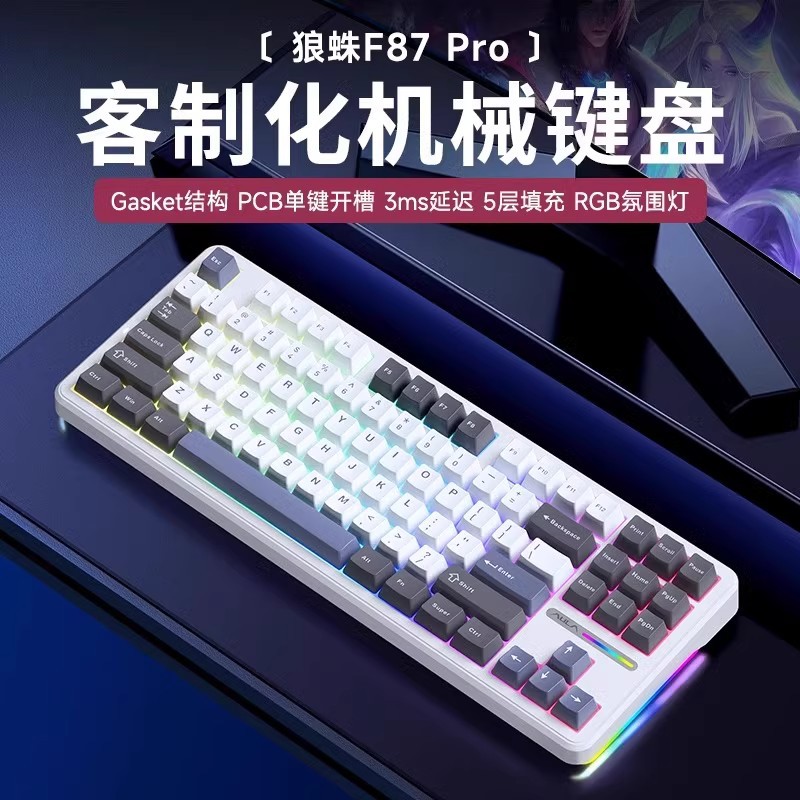 Tarantula F87pro Wireless Wireless Tiga Mode Dikeketir RGB E-sports Hot Plug Mekanik Keyboard LOL