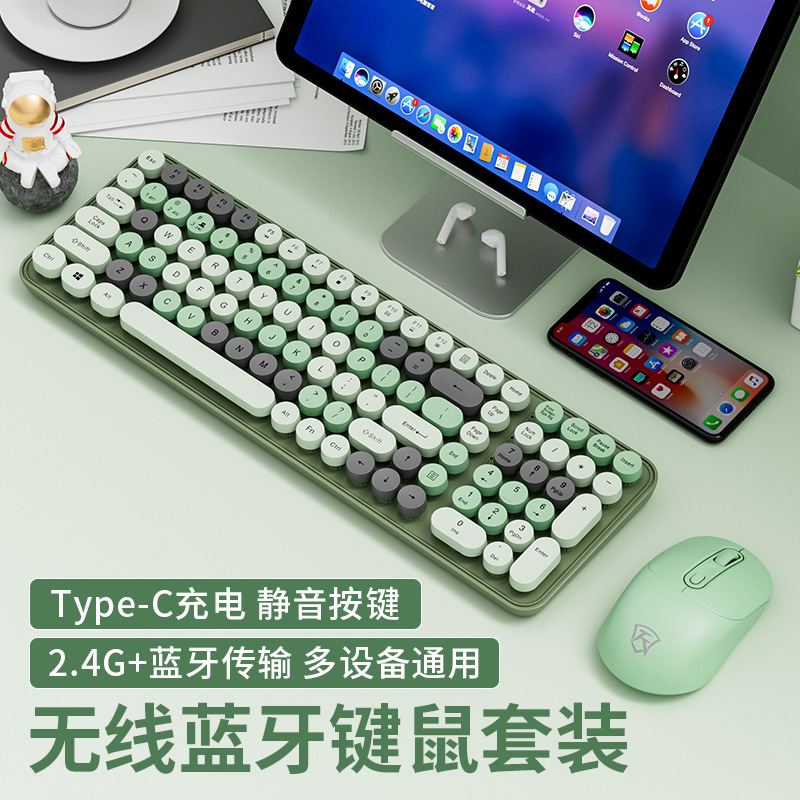 Isi Ulang Keyboard Bluetooth Mekanik Sense Bisu Laptop Anak Perempuan Kantor Mengetik Perangkat Mouse Nirkabel