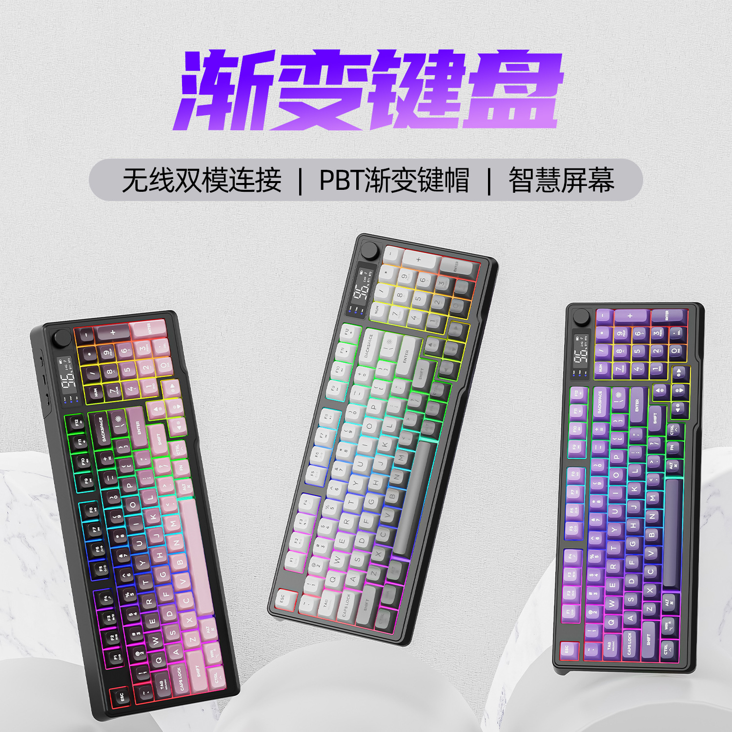 Xuan Yinhu K98 Keyboard Nirkabel Bluetooth Mekanik Berkabel Pencetakan Warna Kepribadian Empat Sisi RGB Transmisi Cahaya Kantor Permainan
