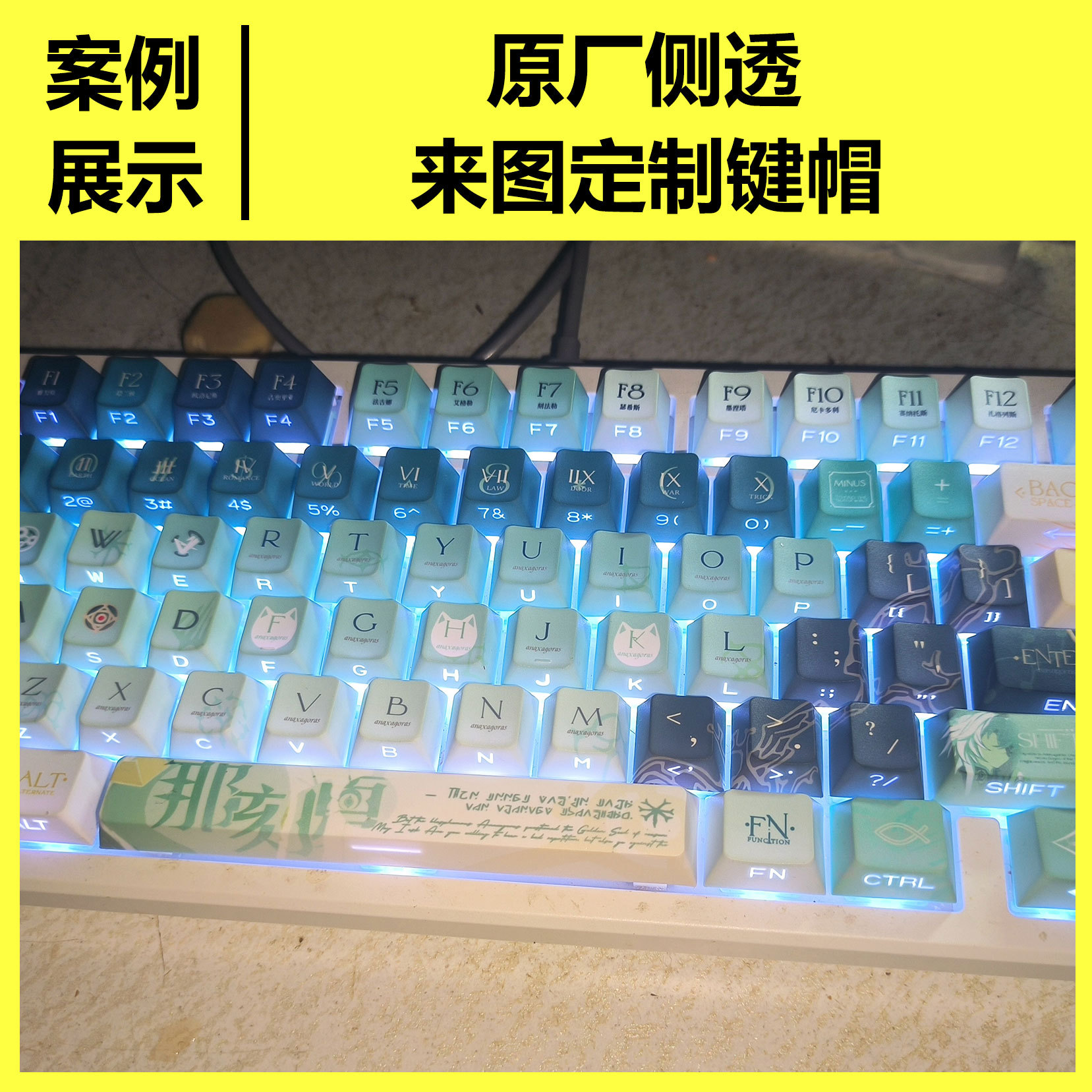 Tombol Tema PBT untuk pejalan kaki depan Keyboard Mekanik Tembus Cahaya Sublimasi Kepribadian 87 Sisi Diukir Kepribadian Universal