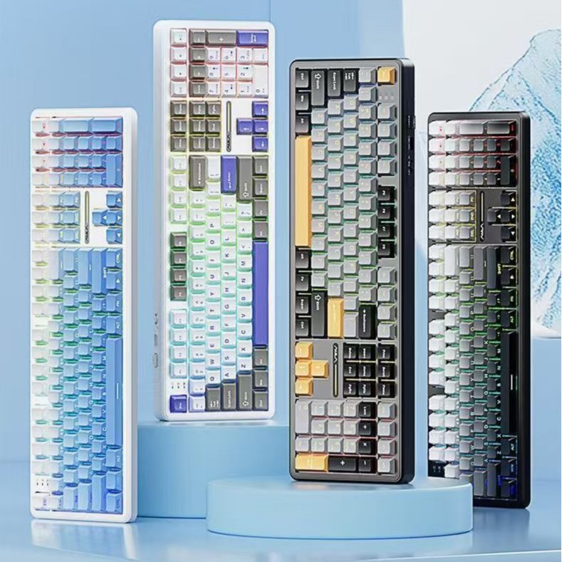 Black Lord AK980 Ikan Terbang Side Hitam Tiga Mode RGB Hot Sisipan Keyboard Mekanik Nirkabel