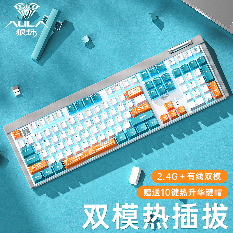 AULA/Tarantula F3099 Nirkabel Tiga Mode Nirkabel Nada Ringan Tangan Keyboard Bluetooth Gaming Notebook Desktop Lintas Batas
