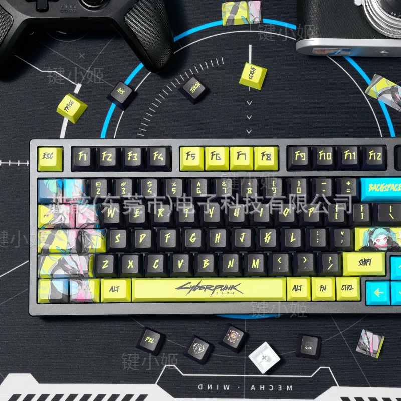 Cyber Punk Sisi Transmitter Orang Tembus 130 Kunci Tombol Keyboard Mekanik PBT Sublimasi CHERRY Asli