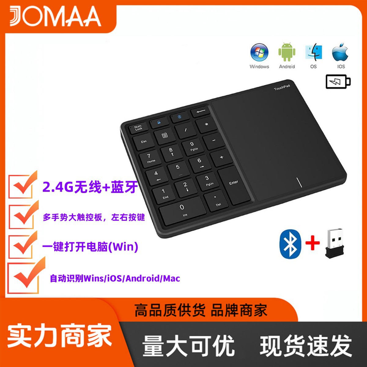 Keyboard digital nirkabel, papan ketik Bluetooth mini 2.4g dengan 22 tombol untuk tablet dan laptop