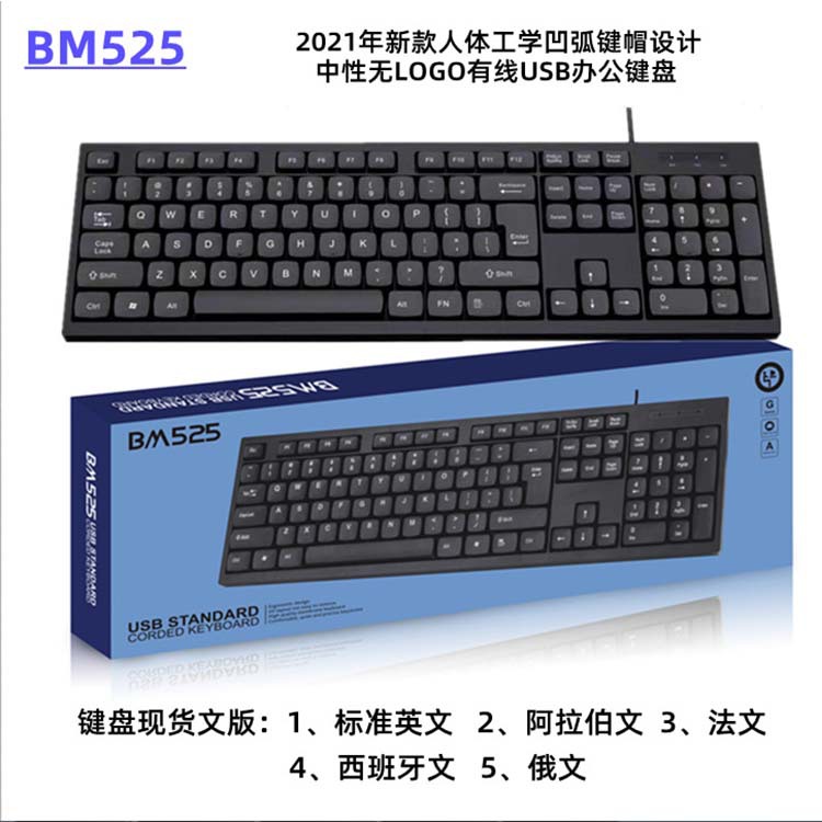 Keyboard BM525 Bahasa Spanyol Arab Rusia Prancis Inggris USB keyboard lintas batas