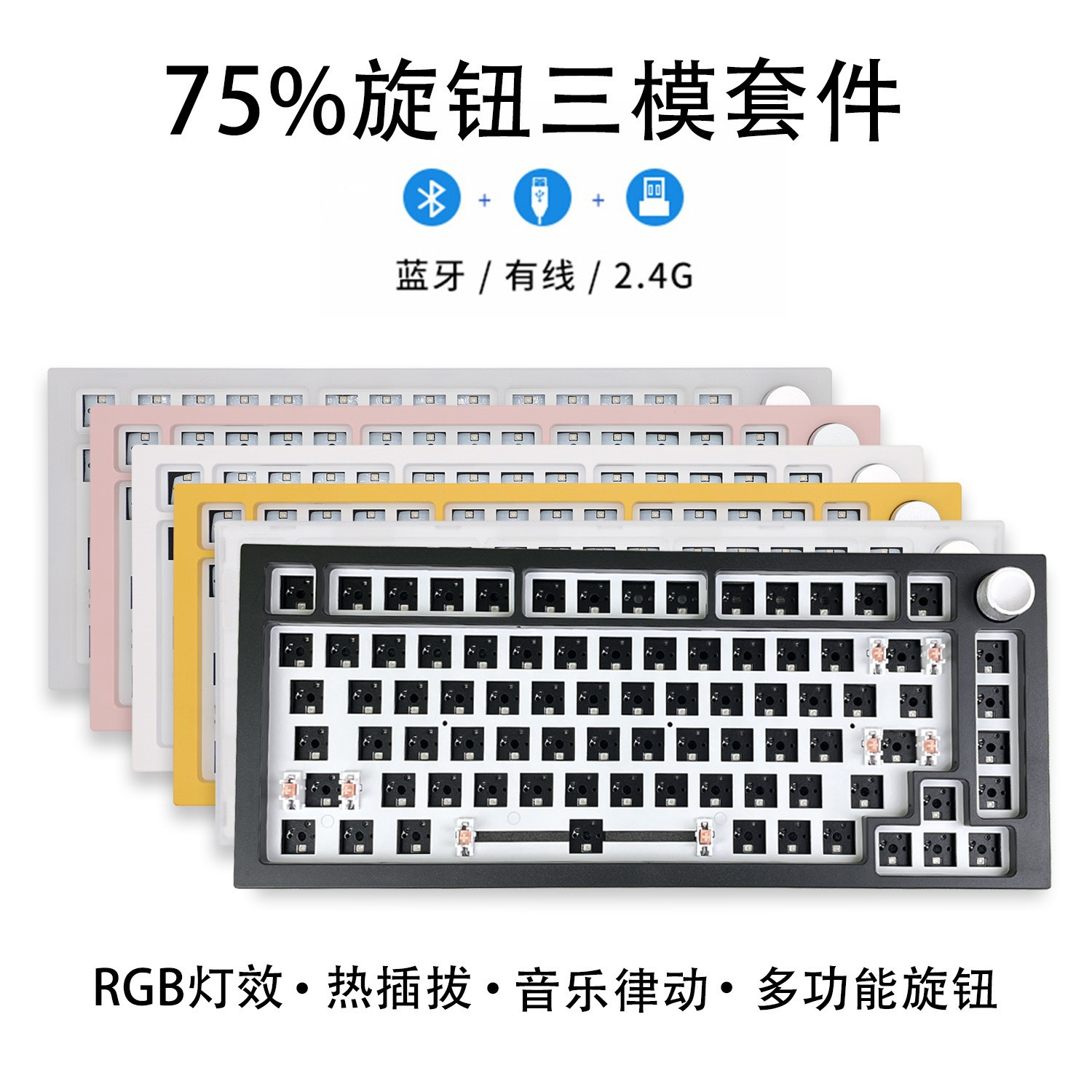 Kit keyboard 75 keyboard Mekanikal kustom 75, kit steker panas RGB nirkabel tiga mode dengan mode tunggal