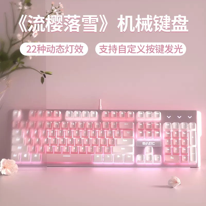 Keyboard Mekanikal bulan salju, ponsel gadis berkabel pink putih Pink e-sport game komputer lucu sumbu hijau sumbu merah