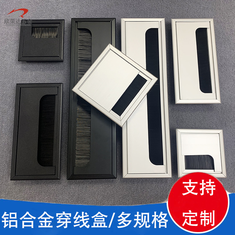 Kotak ulir aluminium Aloi, kotak routing sikat flip meja komputer kantor, penutup lubang ulir dekorasi persegi panjang