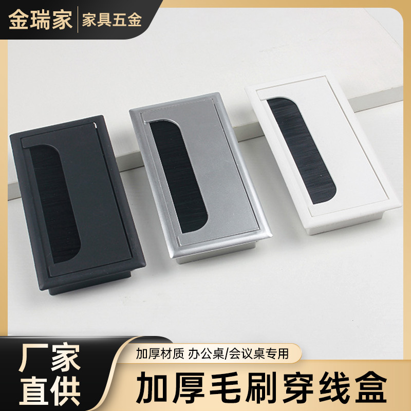 Penutup lubang kawat plastik ABS aluminium imitasi persegi, dengan sikat kotak ulir meja komputer penutup lubang ulir meja konferensi