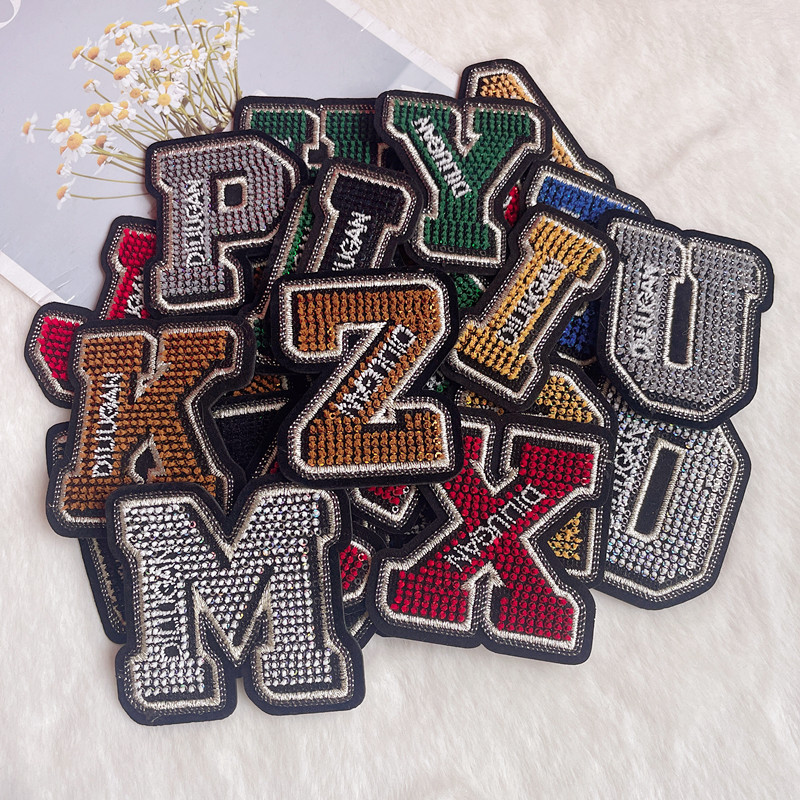 Naxiang komputer bordir warna-warni huruf Inggris payet bordir khusus sikat gigi bordir aksesori pakaian stiker kain huruf