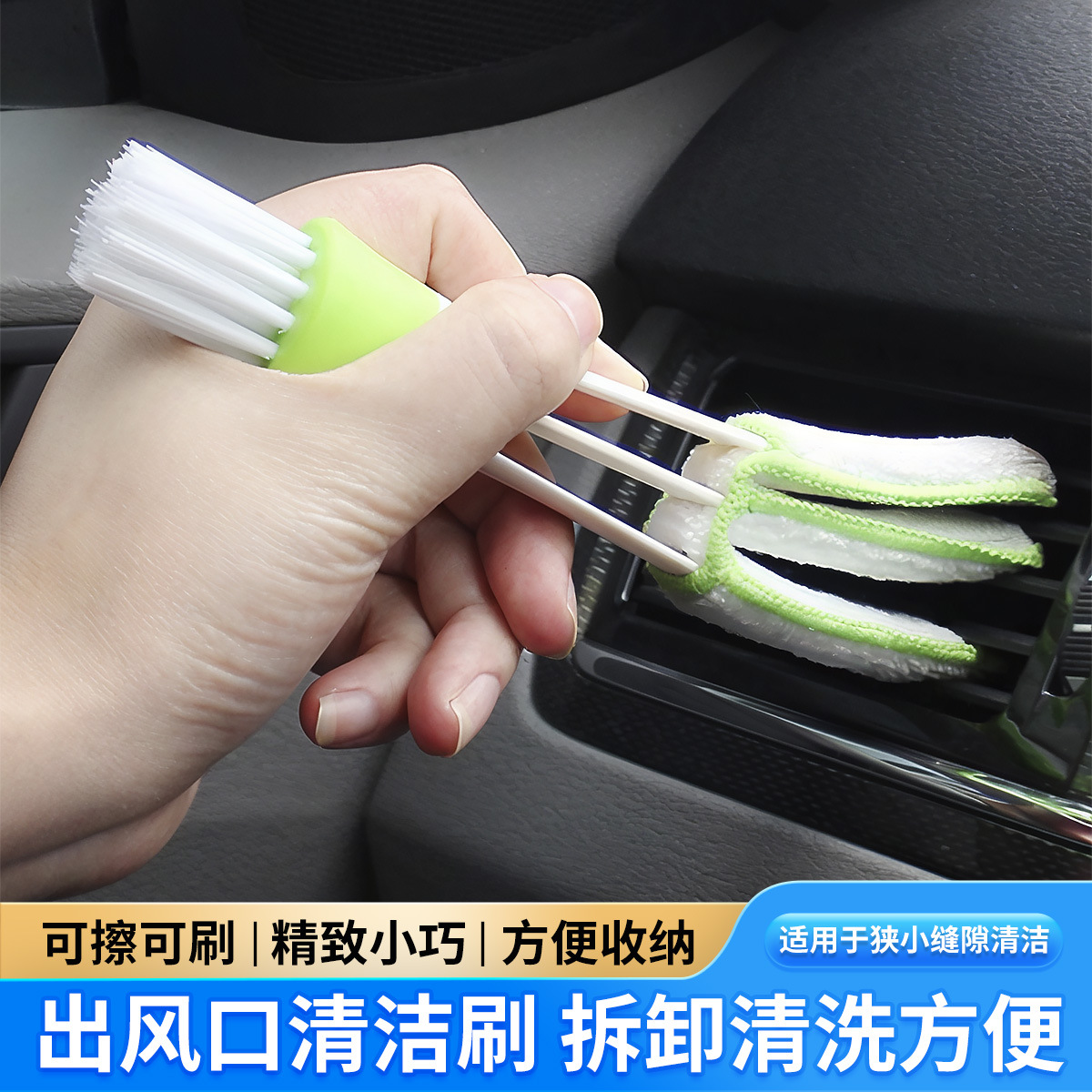 Sikat celah AC berkepala ganda, sikat pembersih keyboard Port AC mobil, Penyedot Debu outlet udara multifungsi