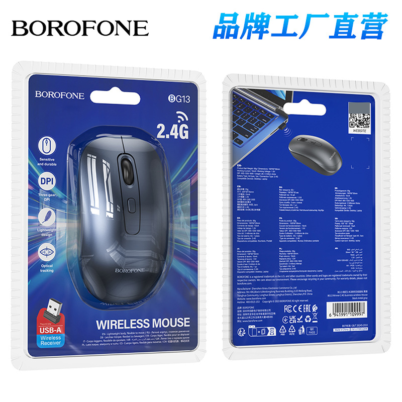 BOROFONE BG13 Mouse optik nirkabel bisnis, Mouse game kantor ergonomis tombol 6D baru dengan dua mode