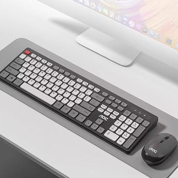 AOC KM720 Mouse Keyboard nirkabel, setelan keyboard komputer warna kontras anti percikan bisnis rumah kantor