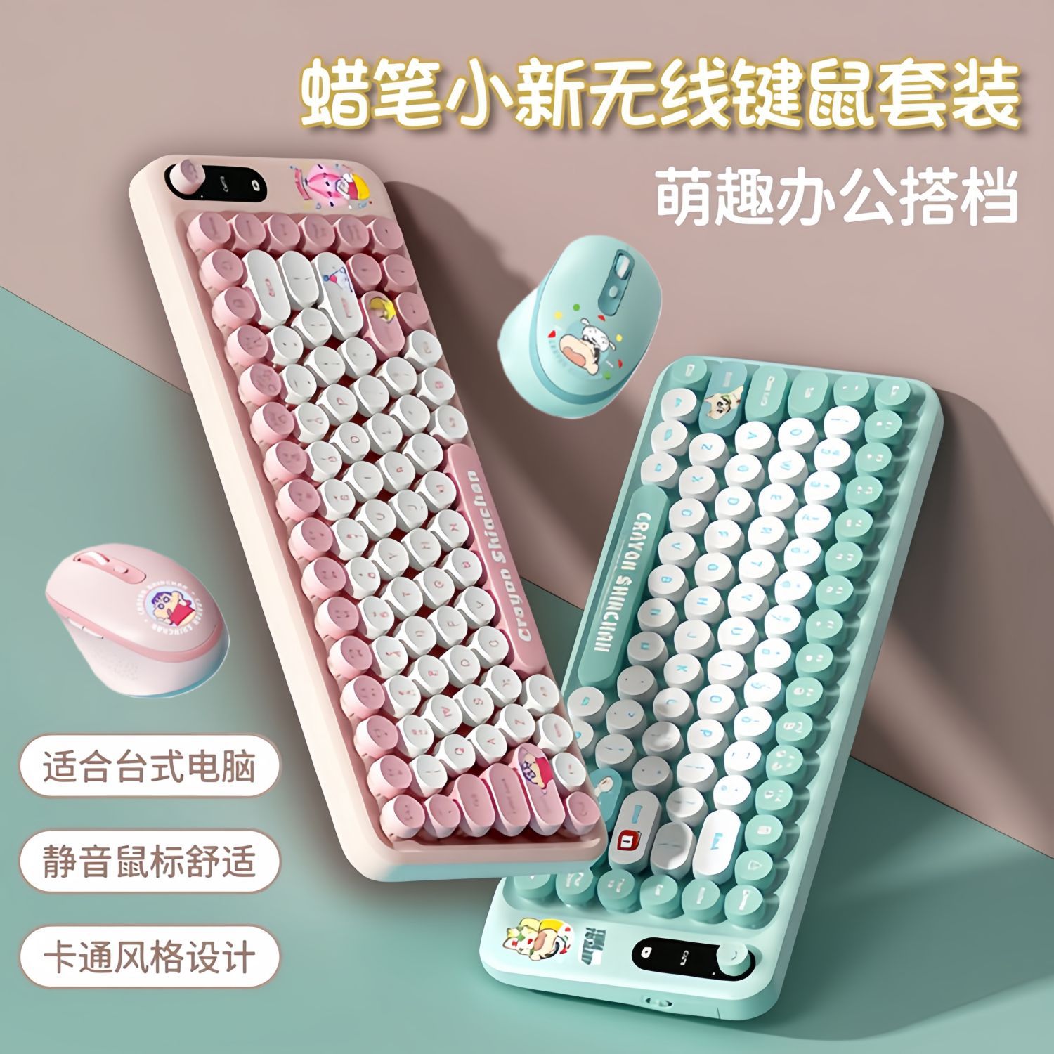 Crayon Shinchan Keyboard Nirkabel Notebook USB Menerima Set Mouse Bisu Kartun Komputer Desktop Pink Pria Wanita