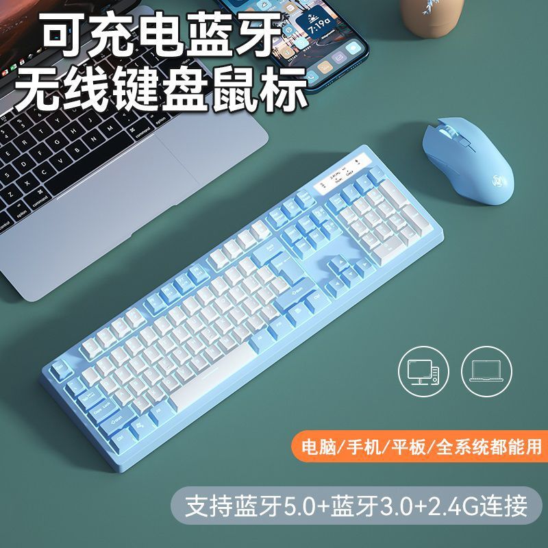Pengisian daya baru, 2.4g Bluetooth 3.0 Bluetooth 5.0 nirkabel mode ganda keyboard dan mouse setelan tiga mode keyboard dan mouse