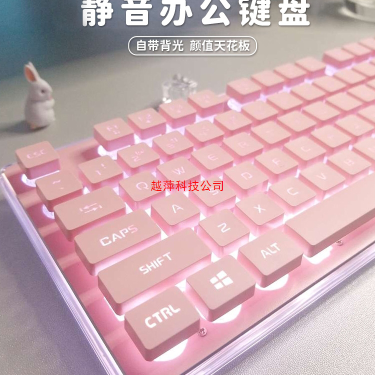 Front Walker X7 Keyboard Senyap Anak Perempuan Kantor Warna Merah Muda Nilai Wajah Tinggi Perangkat Mouse Mekanik Komputer Nirkabel