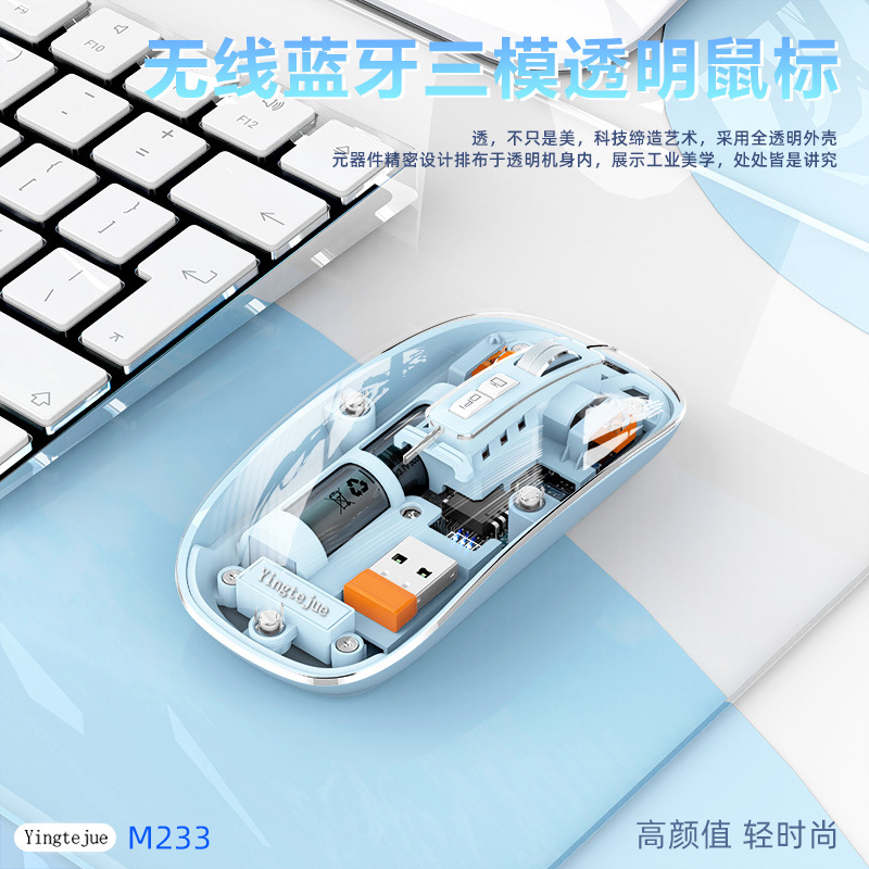 Yingtejue Mouse Nirkabel Bluetooth Transparan Tiga Mode Mouse Ringan Tipis Portabel Pengisian Daya Rumah Kantor