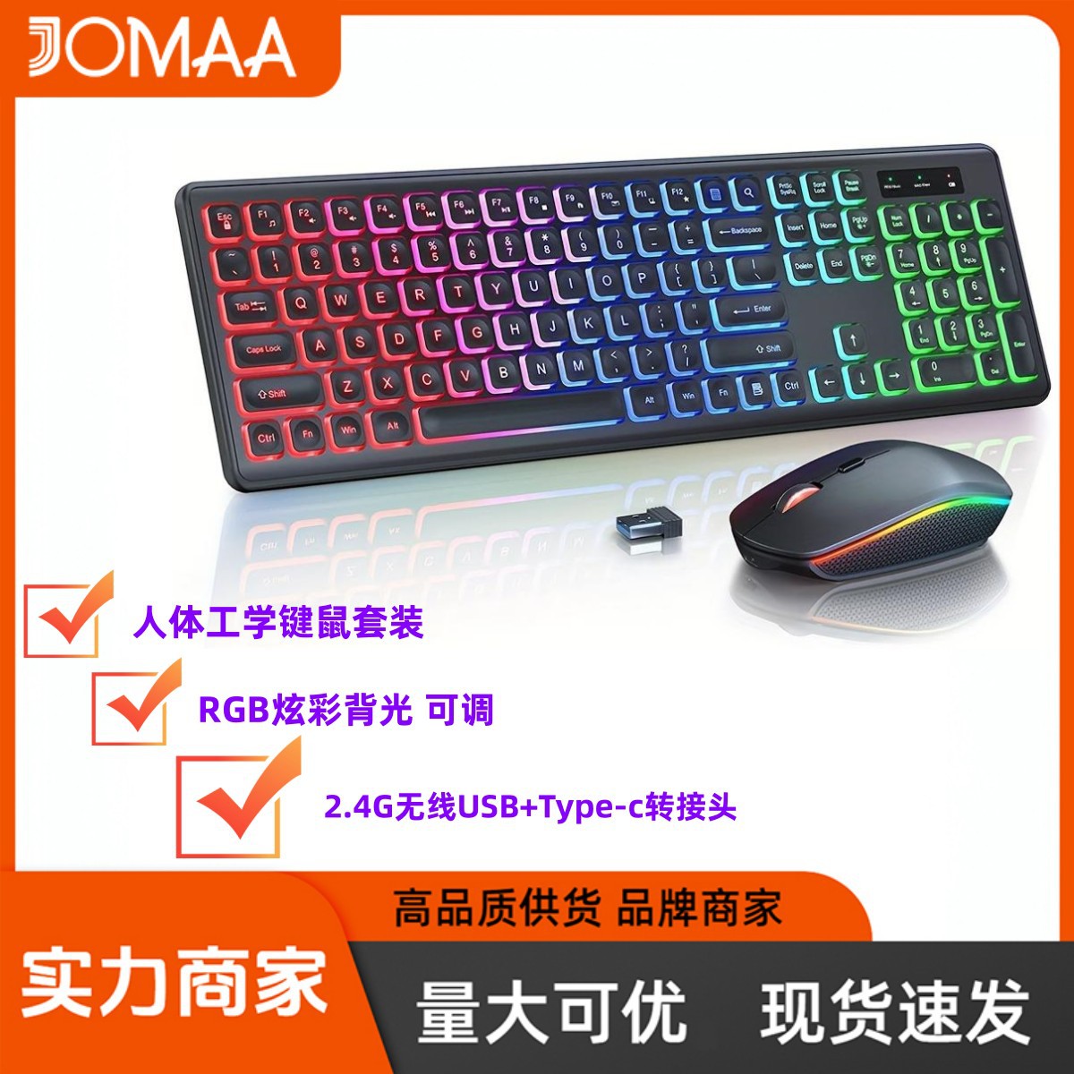 Lampu latar kombinasi keyboard nirkabel 2.4g, tombol sudut miring ergonomis ukuran penuh RGB dapat diisi ulang