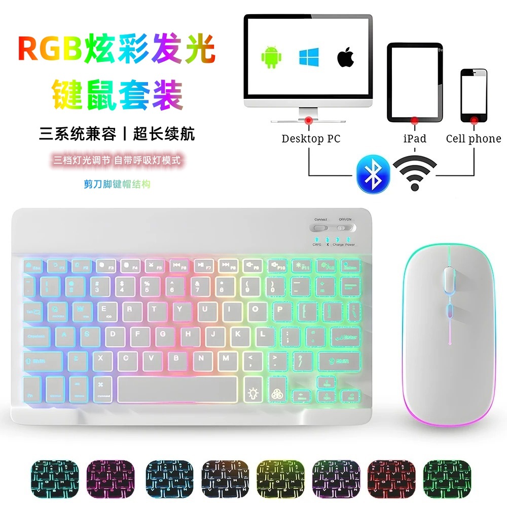 Keyboard dan mouse Bluetooth, papan ketik nirkabel bercahaya warna-warni RGB, tiga sistem kompatibel dengan pengisian daya universal banyak perangkat