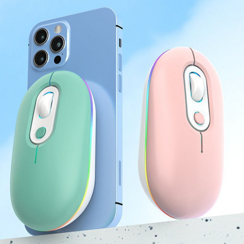 Mouse Bluetooth dual-mode baru, dapat diisi ulang, untuk laptop, kantor, senyap, bercahaya, nirkabel