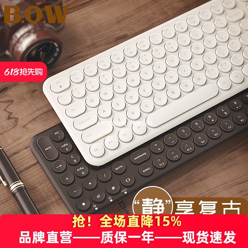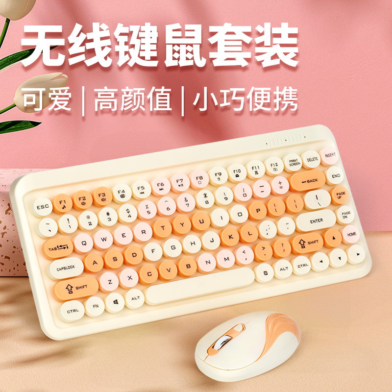 Set Keyboard dan Mouse Nirkabel Campuran Warna HK08 Model Baru Keyboard Nirkabel Kantor Bulat Retro Lucu Gadis Macaron