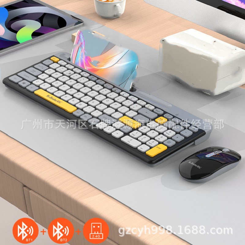 Keyboard mekanis nirkabel lintas batas, mouse keyboard mode ganda Bluetooth, setelan isi daya game komputer kantor, keyboard Warna lucu