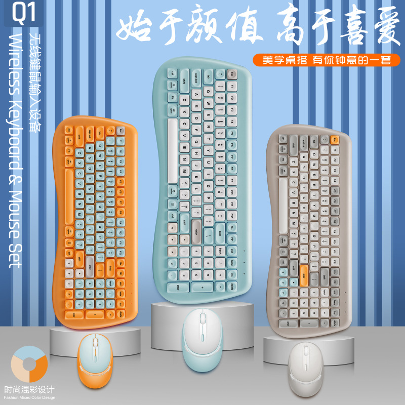 Warna Keyboard Nirkabel Set Mouse Belajar Kantor Hiburan Kekeyhood Bulat Notebook Perabakan Pelajar Perempuan Grosir