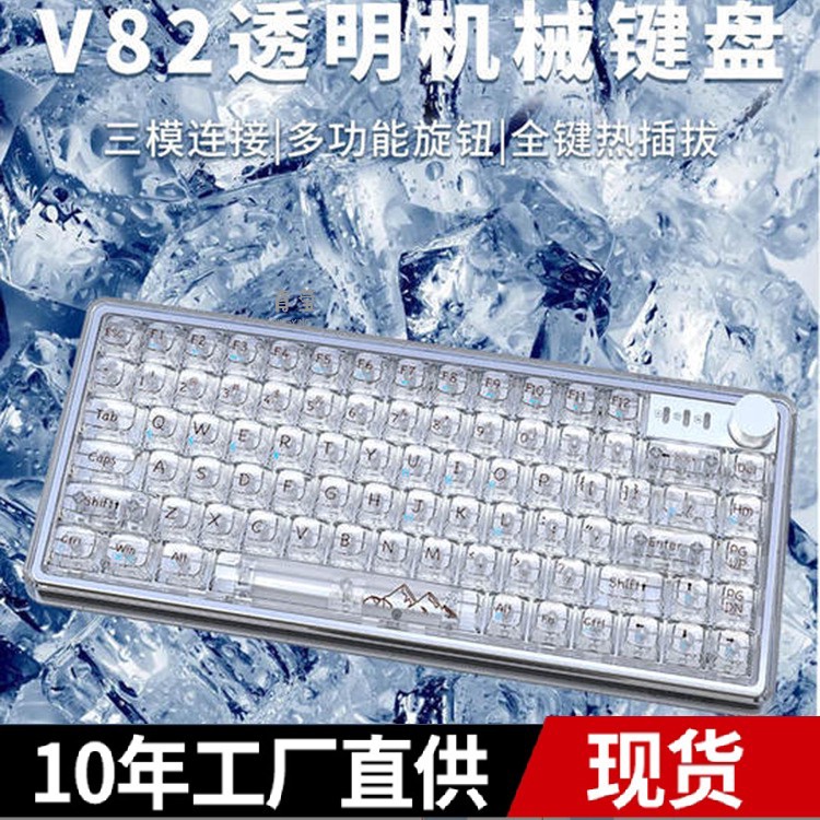 Set Mouse Mekanik V82 Kit Gadis Kantor Wireless Game yang Dikerahkan Tembus Keyboard Transparan Kristal Bluetooth