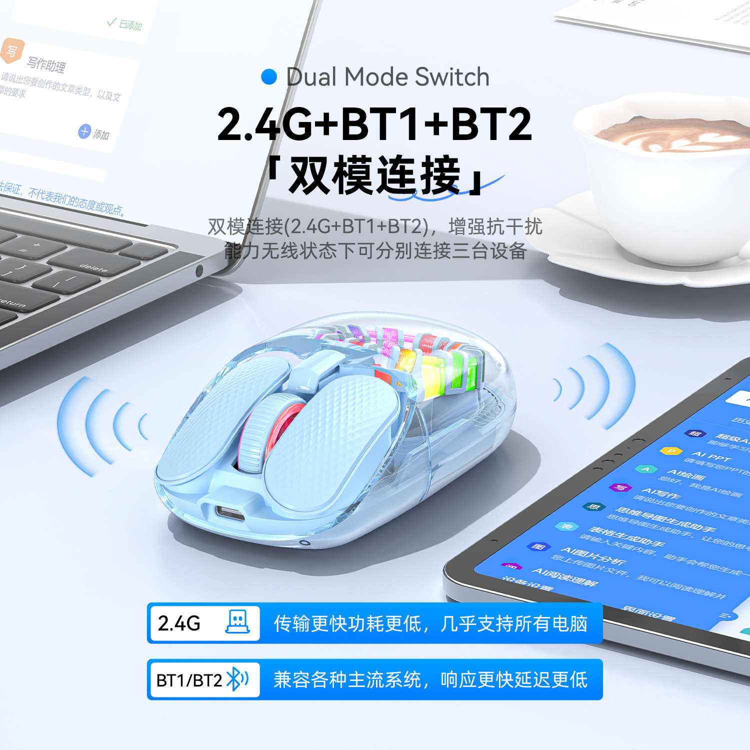 Model Baru Bluetooth Nirkabel Model Ganda Penuh Mouse Transparan untuk Kantor Laptop Komputer Desktop Lucu Portabel RGB Bercahaya