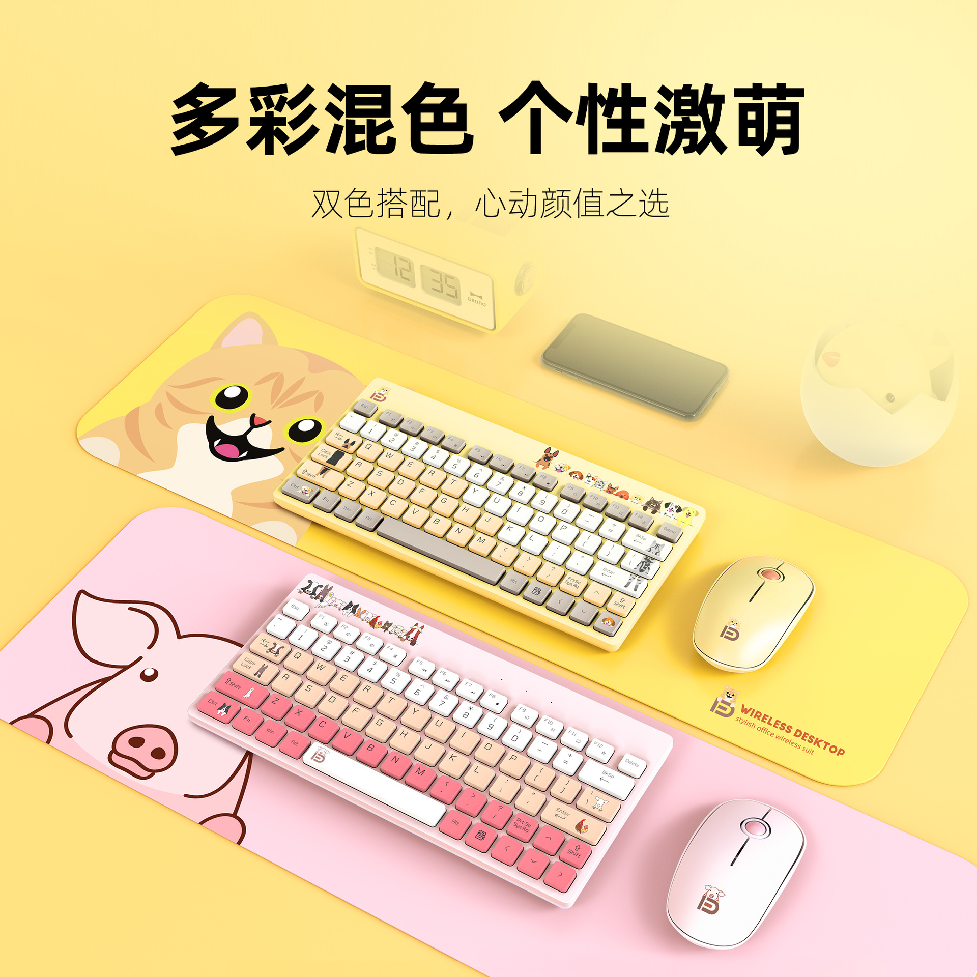 Populer kreatif nirkabel Bluetooth keyboard mouse setelan lucu perempuan laptop kantor komputer universal grosir