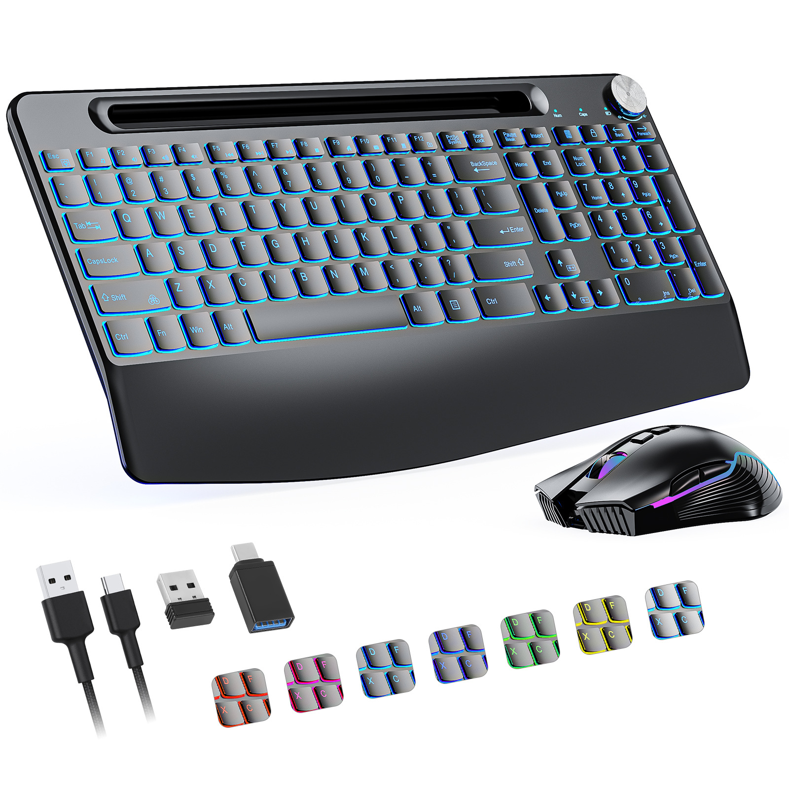 2.4G isi ulang RGB ukuran penuh ergonomis gradien pemancar cahaya nirkabel keyboard dan mouse set goyang mouse ready stock