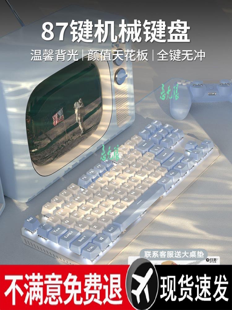 Set Keyboard dan Mouse Mekanik Pejalan Kaki Depan 87 Tombol Permainan Komputer E-sports Kabel Biru Wireless Kantor Gadis Hijau