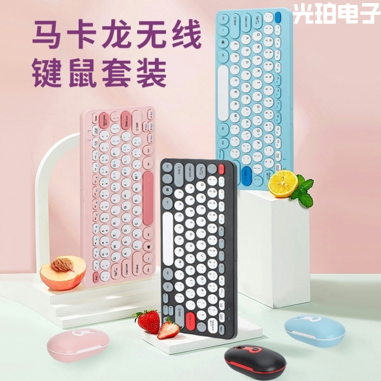 Macaron Warna Mini Kecil Kecil Bentuk Bulat Tombol Nirkabel Set Tombol dan Mouse 78 Tombol Desktop Laptop Universal