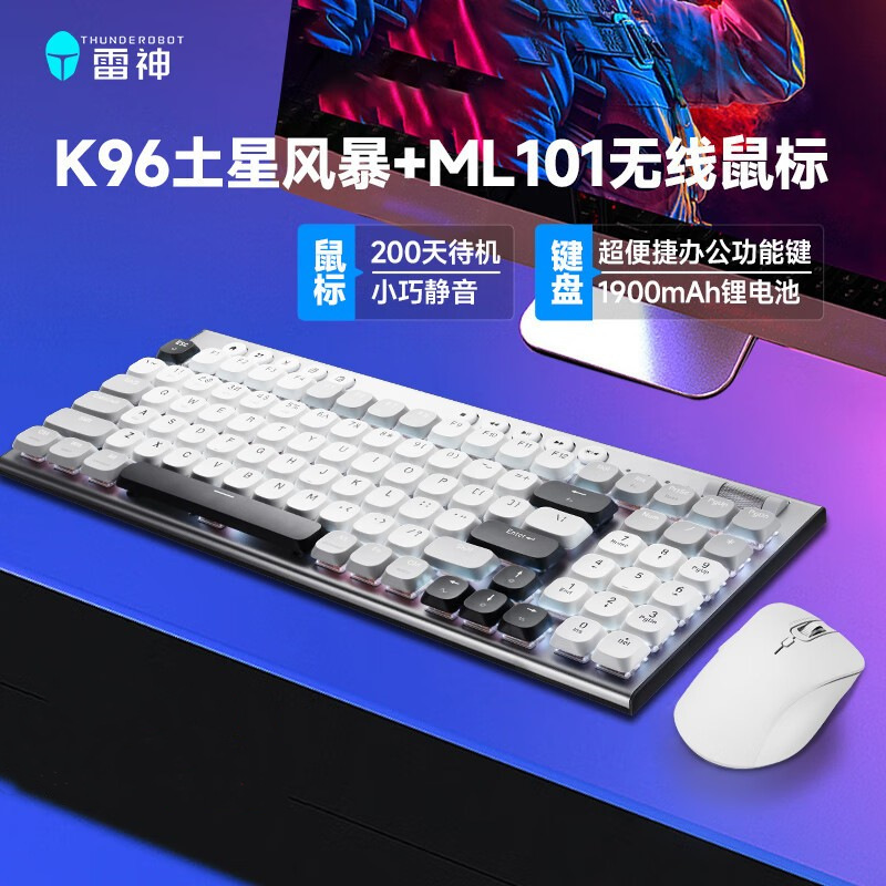 Raytheon K96 Bluetooth Wireless Tiga Mode Keyboard Mekanik Poros Merah Pendek 96 Tombol Keyboard Desktop Keyboard Bercahaya Notebook
