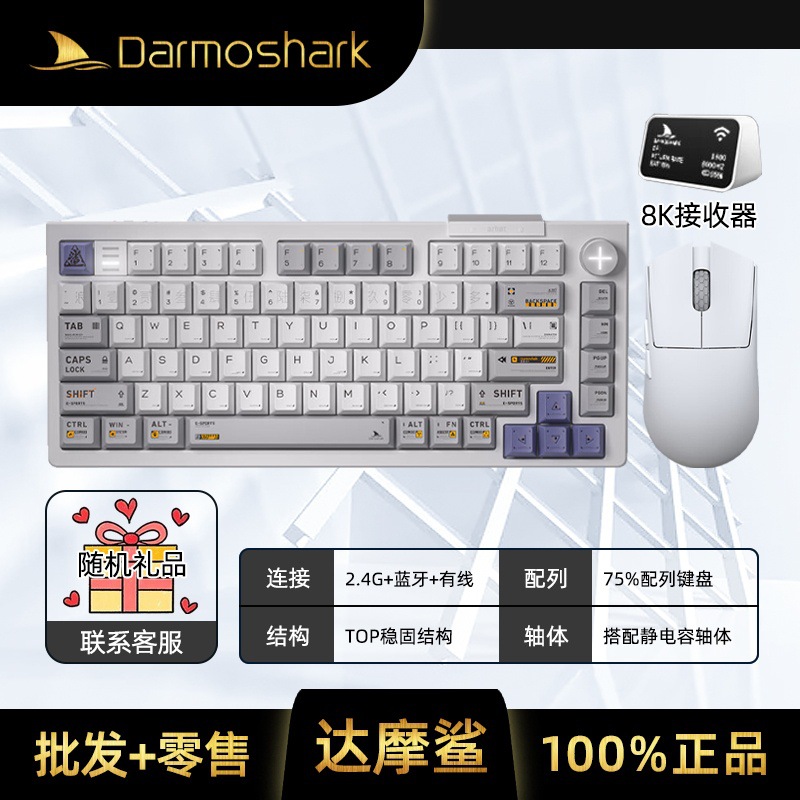 Darmoshoark Dharma Shark Set Keyboard Mekanik dan Mouse EC75 Set Keyboard dan Mouse Berkabel Nirkabel Bluetooth Tiga Mode Permainan