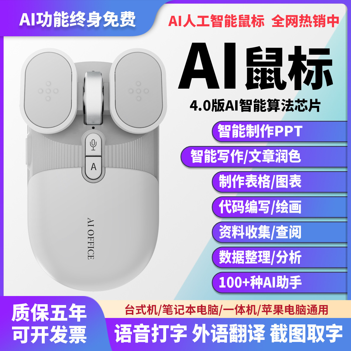 AI Cerdas Suara Nirkabel Rekaman Suara Mouse Penciptaan PPT Penciptaan Dua Mode Universal Bluetooth Mouse Diam