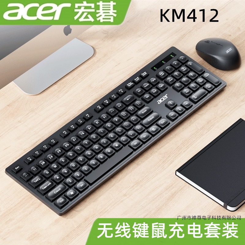 Acer KM412 Set Keyboard dan Mouse Nirkabel Versi Pengisian Tombol Tetesan Air Cokelat Desktop Laptop