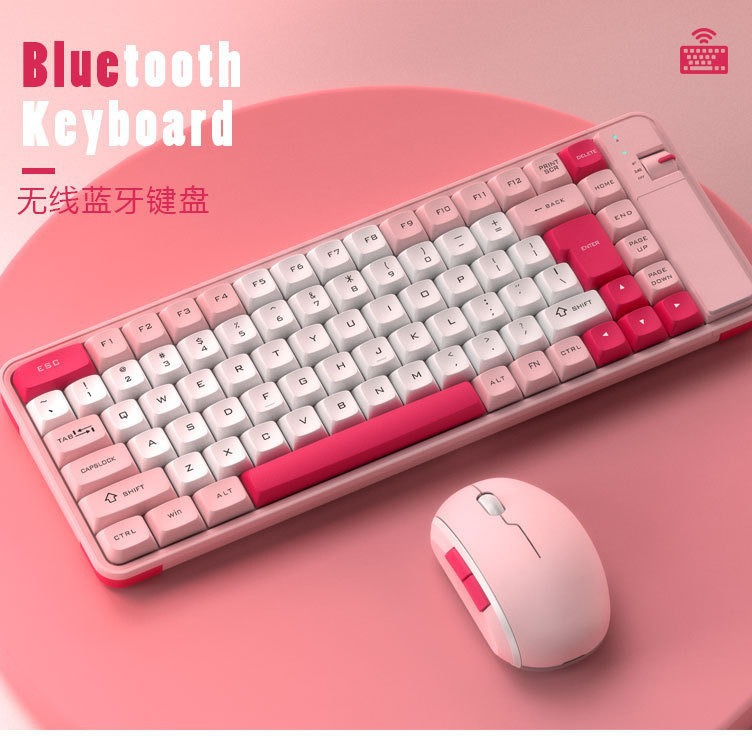 Setelan keyboard mouse nirkabel sunyi, mouse kantor sunyi gadis, nirkabel, usb punk, komputer dan laptop game