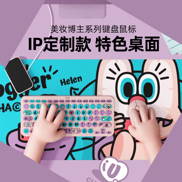 Logitech K380 Keyboard Bluetooth Nirkabel Set Mouse Pebble UOOHA Kecantikan Blogger Wanita Kantor Lucu