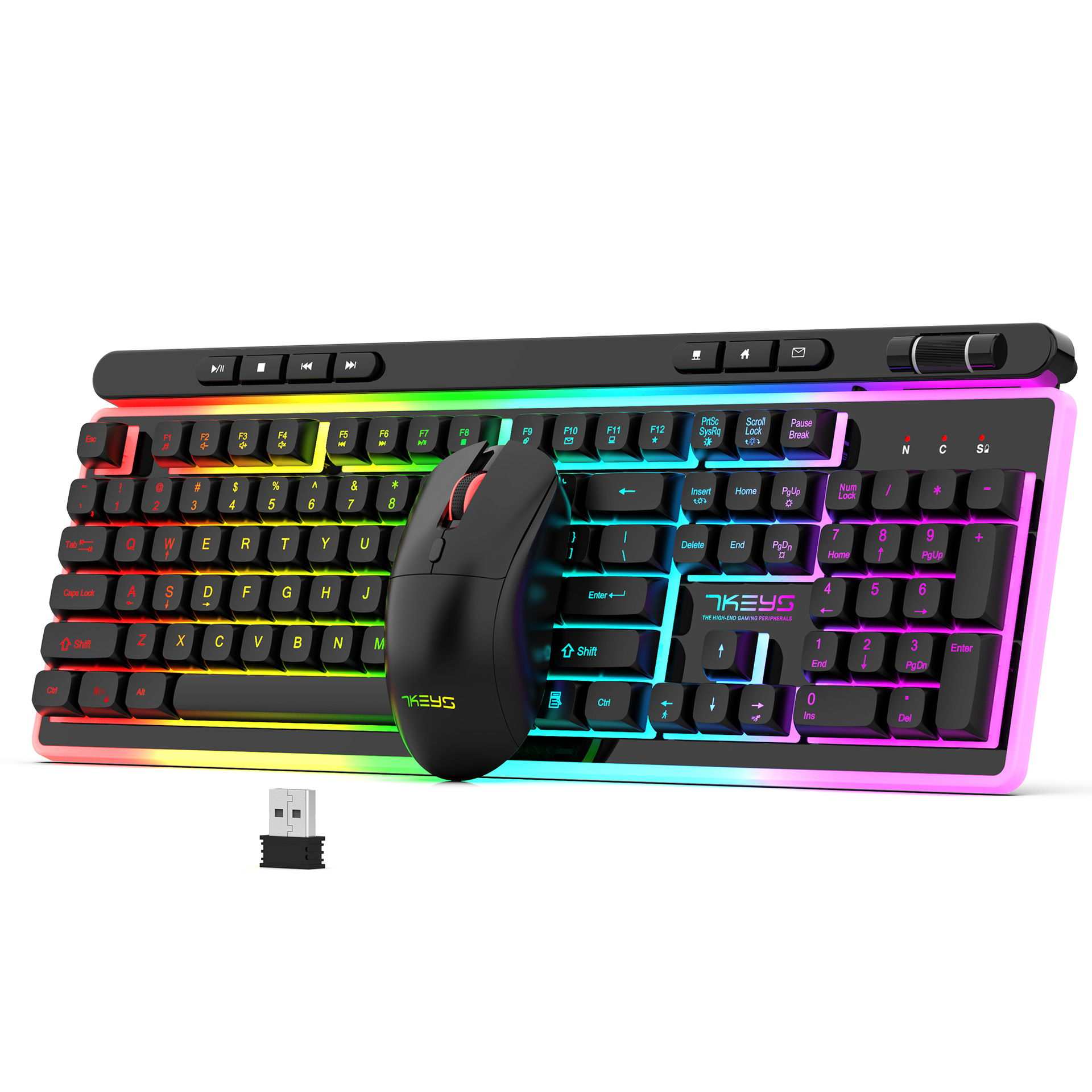 Keyboard dan Mouse nirkabel, setelan keyboard dan mouse komputer dengan satu klik fungsi multimedia pengisian daya bercahaya, tetikus komputer