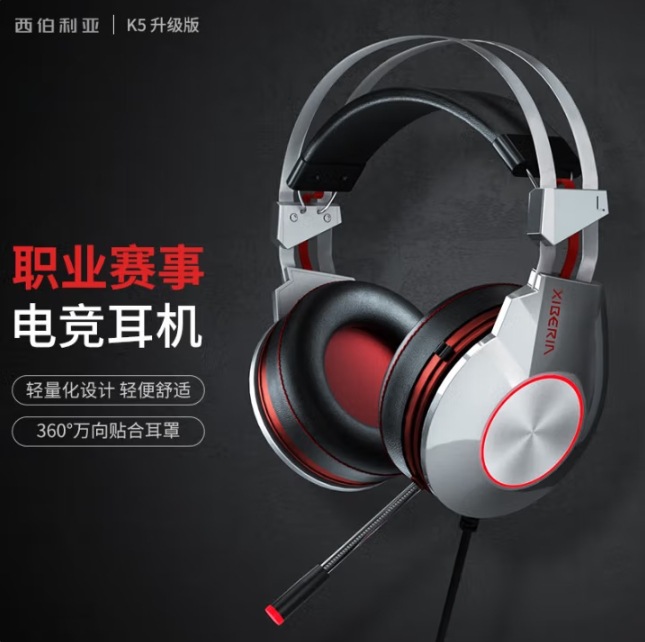 Siberia K5U Headset Gaming Warna Abu-abu Besi Bersuara Reduksi Kebisingan Headset Game Komputer 7.1 Suara
