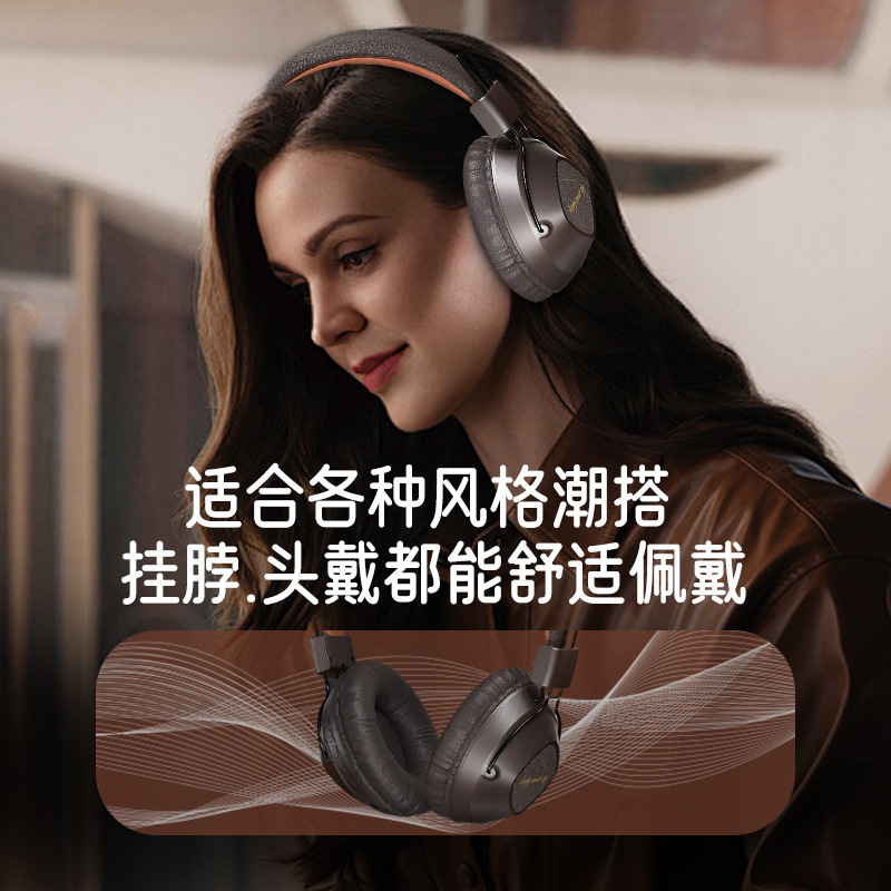 Headset Bluetooth lintas batas, pasokan langsung dipasang di kepala 5.3 sisipan kartu lipat penutup telinga besar nyaman daya besar 15h